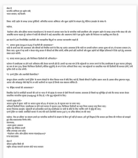 -फेम के प्रदेश उपाध्यक्ष ने केंद्रीय वाणिज्य मंत्री को लिखा पत्र, जताई चिंता