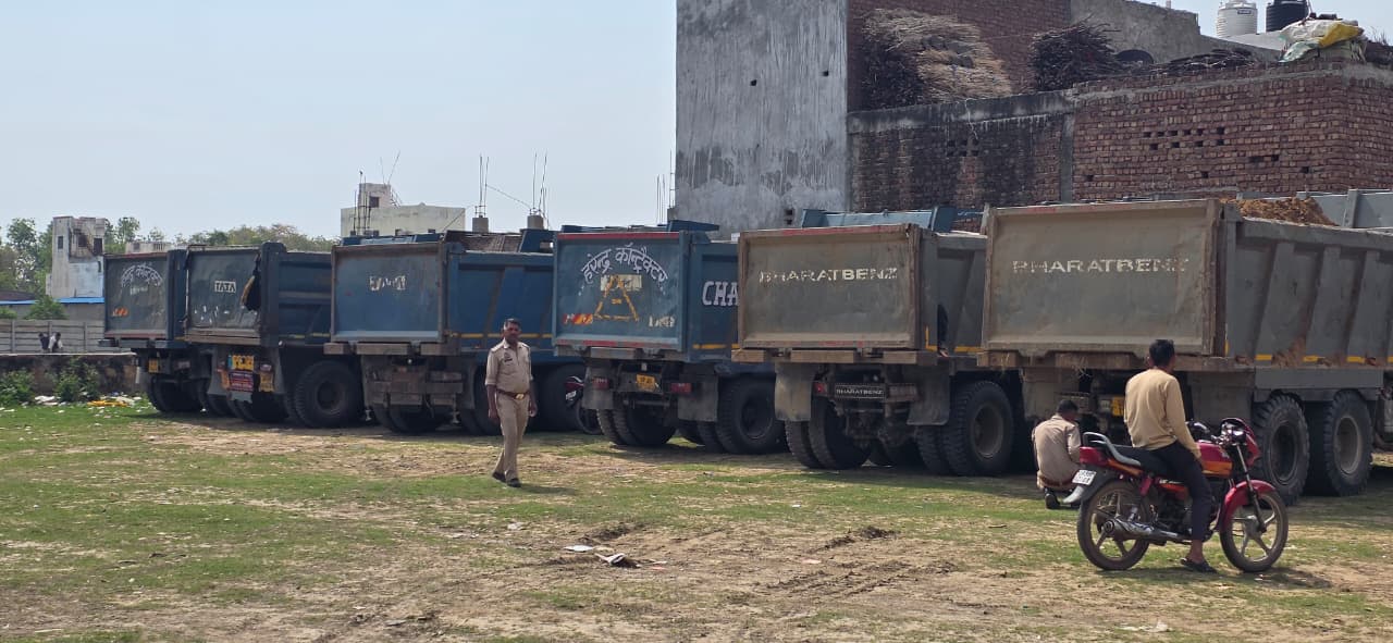 बरसाना क्षेत्र में अवैध खनन करते जब्त किये दस डंपर, तीन जेसीबी