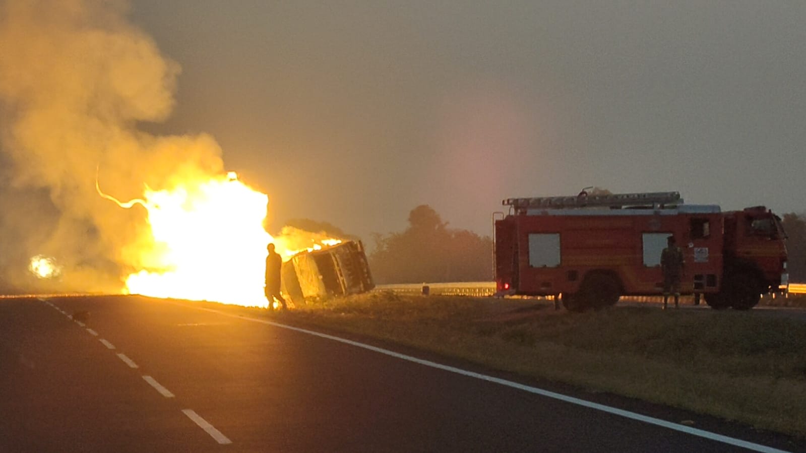मथुरा । जनपद के बरेली जयपुर हाइवे पर चार घंटे दहशत भरे रहे, महावन क्षेत्र में सडक हादसे में हाइवे पर केमिकल से भरा टैंकर पलट गया, इसके बाद टैंकर में आग लग गई, आग इतनी भयंकर थी कि लपटें 20 फीट ऊंची थीं, एक किलोमीटर तक आग की लपटें देखी जा सकती थीं, रात का समय होने के चलते आसपास लोग नहीं थे जिसकी बजह से कोई भी बड़ी जनहानि होने टल गई ।