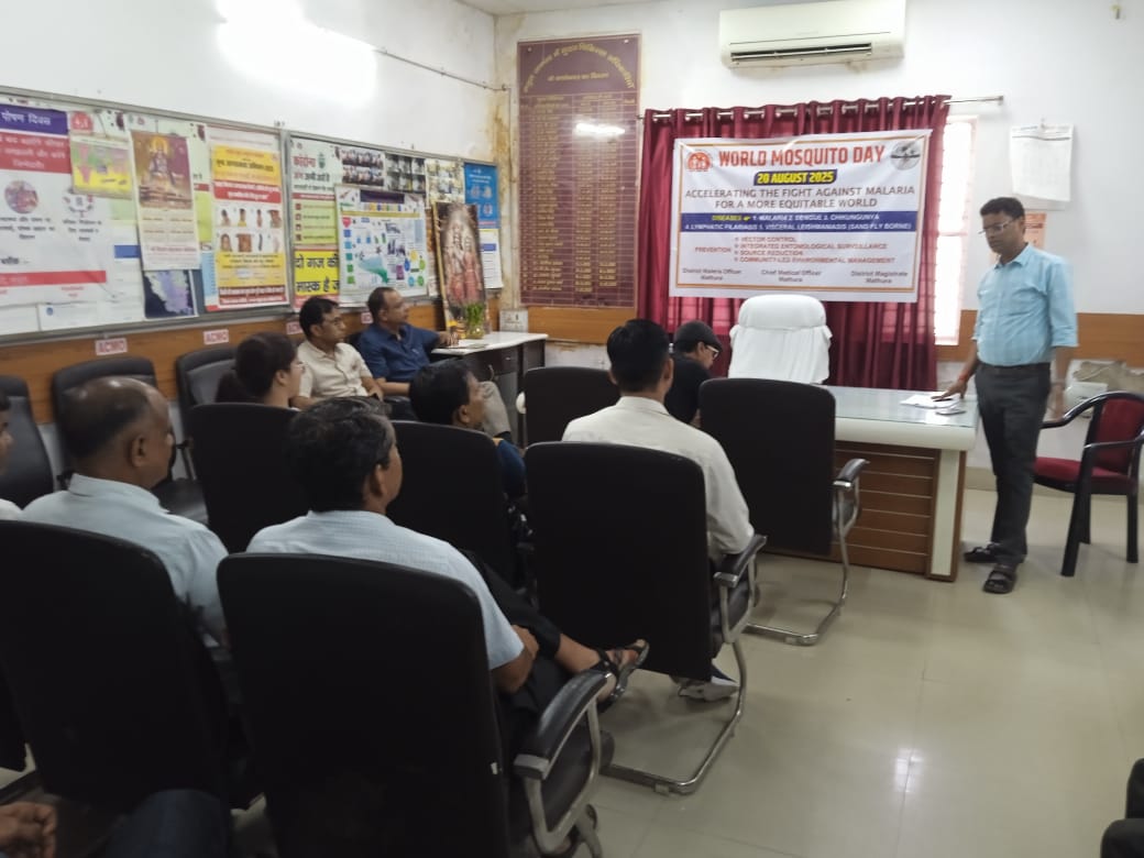 अपर मुख्य चिकित्सा अधिकारी डॉ0 आलोक कुमार ने अध्यक्षता करते हुए समस्त कर्मियों से माइक्रोप्लान के क्षेत्र भ्रमण कर गंभीरता से अपने दायित्वों का निर्वहन करने के निर्देश दिए, साथ ही गोष्ठी में विश्व मच्छर दिवस के आयोजन के विषय में और मच्छर जनित रोगों से बचाव और उपचार के विषय में विस्तार से चर्चा की, उन्होंने जनता से अपील की कि वे पानी के बर्तनों को ढक कर रखें, सप्ताह में एक बार पानी के बर्तनों को खाली कर लें और मच्छरों से बचने के लिए मच्छर रोधी क्रीम, नीम का तेल, कडवा तेल का उपयोग करें, उन्होंने यह भी कहा कि लोगों को बुखार होने पर नजदीकी स्वास्थ्य केंद्र/स्वास्थ्य कार्यकर्ता से खून की जांच करानी चाहिए और दवा नियमित और पूरी खानी चाहिए ।