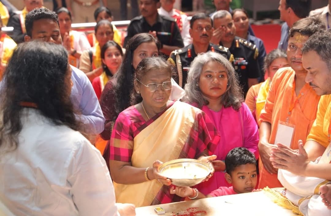 मथुरा । महामहिम राष्ट्रपति ने गुरुवार को मथुरा वृंदावन के मंदिरों में दर्शन किये, राष्ट्रपति द्रौपदी मुर्मु अपने एक दिवसीय आध्यात्मिक दौरे पर वृंदावन पहुंचीं, वे मथुरा में सात घंटे के दौरे पर आयीं हैं, वह विशेष ट्रेन से वृंदावन रोड रेलवे स्टेशन पर उतरीं जहां गन्ना विकास मंत्री चौधरी लक्ष्मी नारायण ने उनका स्वागत किया। गुरुवार को निर्धारित समय 10.35 से दस मिनट पहलेे राष्ट्रपति द्रौपदी मुर्मू कड़ी सुरक्षा व्यवस्था के बीच कार से बांकेबिहारी की वीआइपी पार्किंग तक पहुंची, मंदिर के प्रवेश द्वार पर गोल्फ कार्ट से उतरते ही श्री बांके बिहारी हाईपावर प्रबंधन कमेटी के अध्यक्ष न्यायमूर्ति अशोक कुमार और सदस्य दिनेश गोस्वामी ने राष्ट्रपति और उनके साथ आए परिवार के लोगों का भी स्वागत किया और ठाकुरजी के दर्शन कर पूजा अर्चना की ।