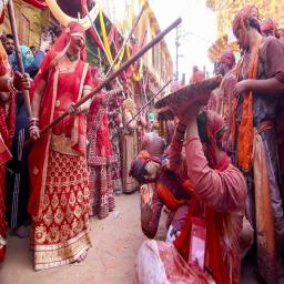 हुरियारों पर नंदगांव की हुरियारिनों ने घूंघट की आड़ में किए लठ्ठ से प्रहार