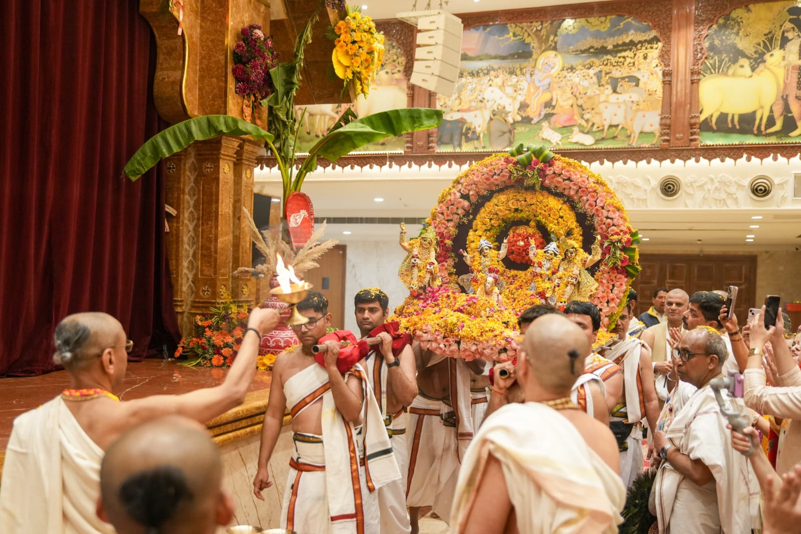 महाभिषेक के दिव्य दर्शन के लिए श्रद्धालुओं का जनसैलाब उमड़ पड़ा, भक्ति-रस से सराबोर वातावरण में “हरि बोल” और “गौर हरि” के जय घोष से सम्पूर्ण परिसर गुंजायमान रहा, देश के विभिन्न नगरों मथुरा, आगरा, लखनऊ, दिल्ली, गुरुग्राम, जयपुर, हरियाणा, ग्वालियर एवं मुरैना से आए भक्तों ने इस अद्भुत आध्यात्मिक उत्सव में सहभागिता की, इस अवसर पर चंद्रोदय मंदिर के अध्यक्ष चंचलापति दास ने कलियुग में हरिनाम संकीर्तन की महिमा का भावपूर्ण वर्णन किया ।