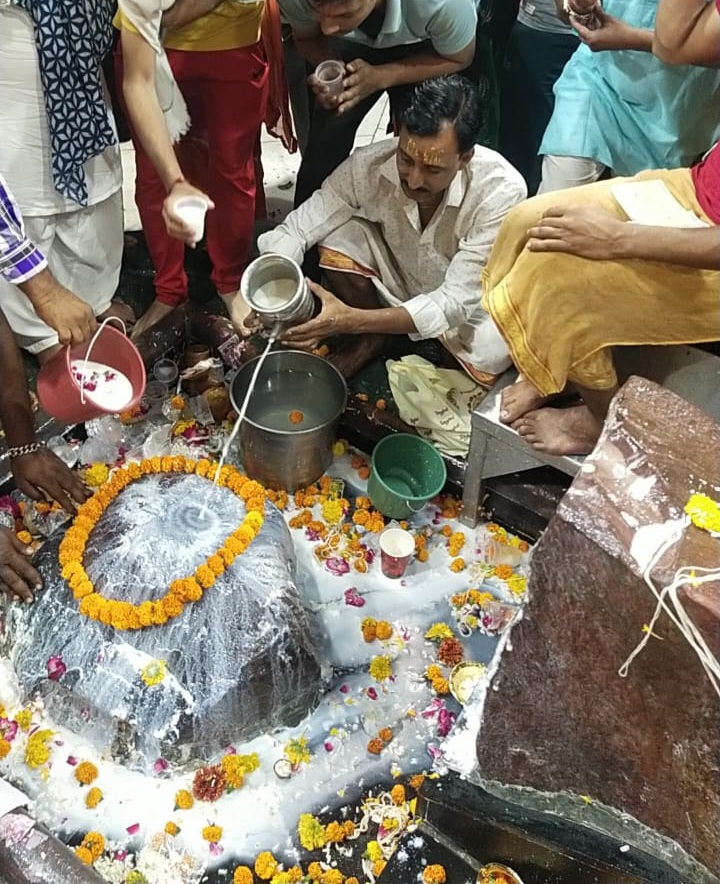 मुखारविंद मंदिर में हुए गिरिराज के दुग्धाभिषेक के साक्षी बने हजारों श्रद्धालु